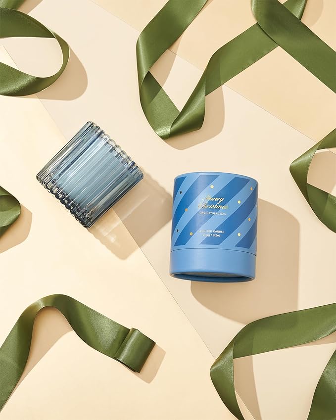- Christmas Gift Box - This scented candle comes in an elegant packaging adorned with Christmas-themed strips and matching gold polka dots, creating a festive Christmas atmosphere. The striped glass candle jar is suitable for any home decoration. Place the gift box under the Christmas tree for an added touch of holiday charm.