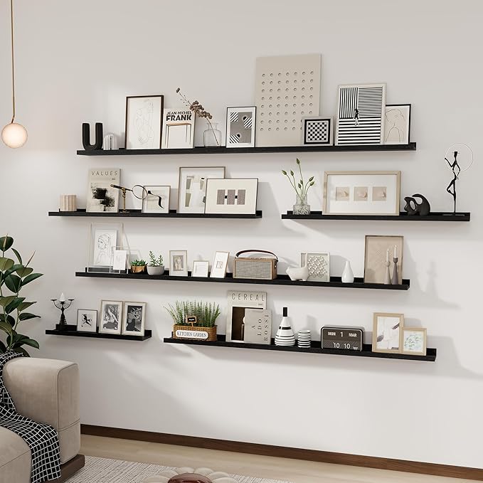 - Dual Picture Frame Shelves: Customize Your Space with Our Dual long picture ledge shelf. This set includes two versatile picture ledge shelf, perfect for personalizing your home. Whether you're creating a family photo gallery in the hallway or showcasing your collectibles, these ledge shelves provide the ideal solution. Ensuring strength and reliability for all your display needs