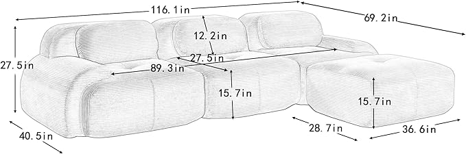 - 【No Assembly Needed】—Arriving compressed in compact boxes, each boneless couch modular piece expands on its own. Simply unbox the couch, and it will fully regain its shape within 3–7 days—no tools, no hassle.