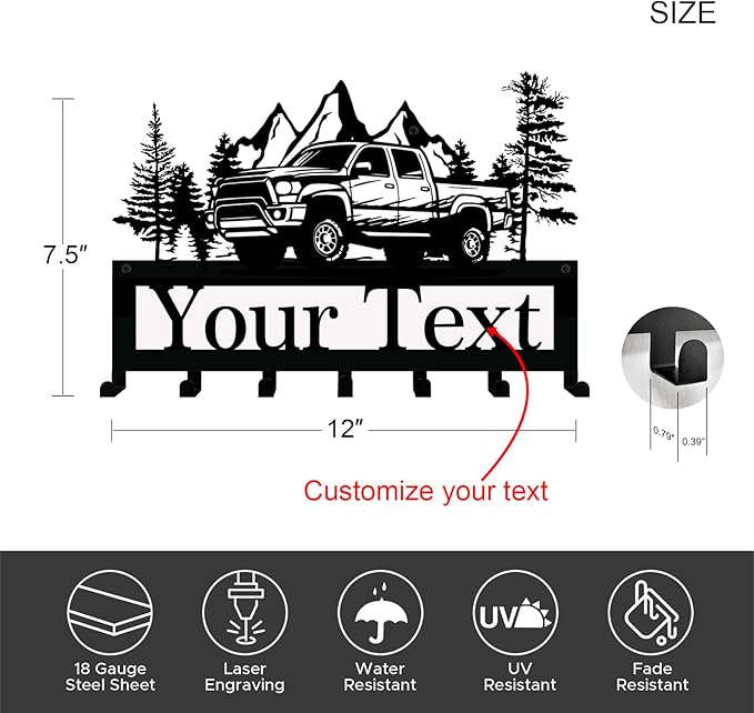 - Personalized Family Key Holder: Customize this wall-mounted key holder with your family name, truck lover’s nickname, or a short phrase. Featuring a classic pickup truck silhouette, this key hanger is perfect for truck enthusiasts, farmers, or anyone who appreciates rustic charm. It makes a thoughtful and practical gift for dads, husbands, or country-style families