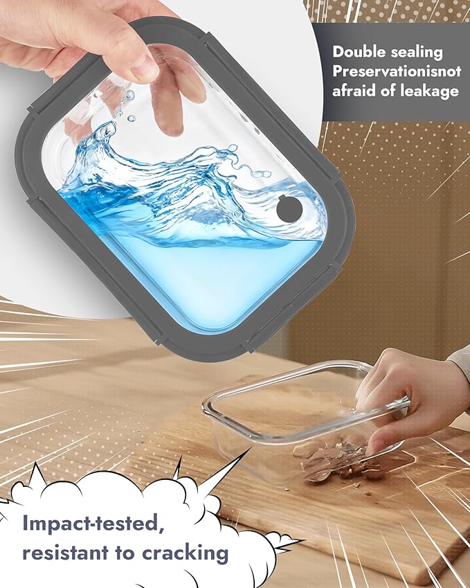 - 【Airtight & Leak-Proof】 Featuring a snap-on design with an air valve, these glass food storage containers with lids keep food fresh and prevent spills.