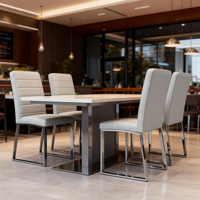 - Luxurious, Easy-to-Clean PU Leather : This dining chairs set of 4 is upholstered in soft yet durable PU leather that resists spills, stains, and scratches. Easy to maintain—just wipe clean with a damp cloth. Medium-density foam padding retains its shape for years, ensuring no sagging even with everyday use