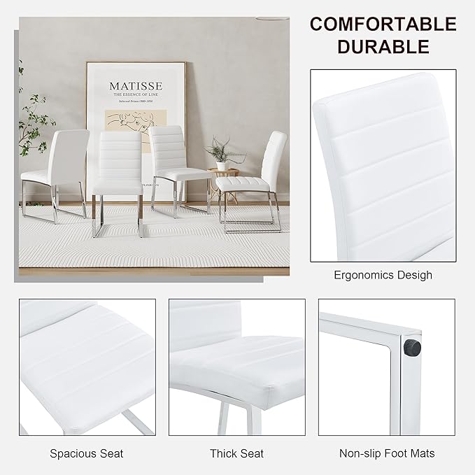 - Luxurious, Easy-to-Clean PU Leather : This dining chairs set of 4 is upholstered in soft yet durable PU leather that resists spills, stains, and scratches. Easy to maintain—just wipe clean with a damp cloth. Medium-density foam padding retains its shape for years, ensuring no sagging even with everyday use