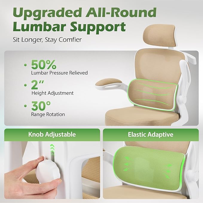 - Breathable All-Day Comfort: Stay cool and focused thanks to advanced breathable mesh fabric promoting continuous airflow. Combined with a high-density, collapse-resistant foam seat cushion, this mesh office chair prevents overheating and discomfort, even during marathon workdays