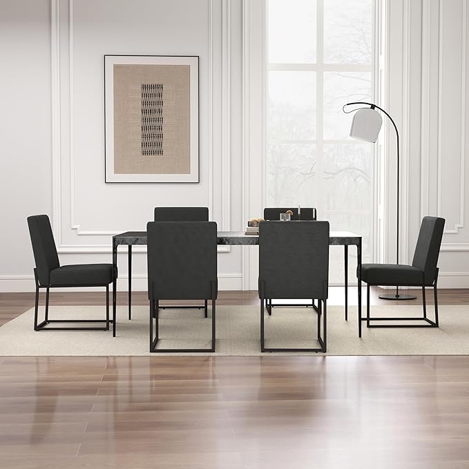 VKNOW Upholstered Dining Chairs Set of 6, Modern Dining Room Chairs, Linen Kitchen Chair Dinner Chair with Black Metal Base for Kitchen Office, Dark Grey-Unstriped