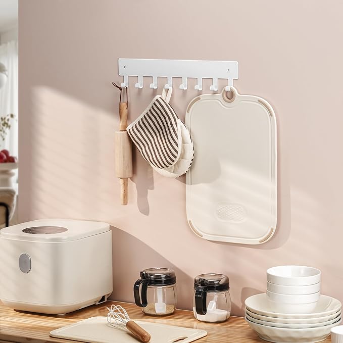 pickpiff Key Holder Wall Mount, Adhesive Key Rack with 8 Hooks Hanger for Car Key Ring, Metal Key Chain Organizer, White 1 Pack