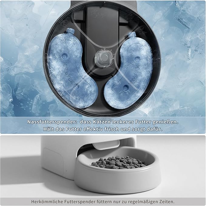 - 【Food Preservation Technology】Automatic cat feeder equipped with two ice packs to keep fresh meat cool for 3-4 hours, canned food can stay fresh for up to 12 hours. Effectively keep food fresh and let cats enjoy delicious food.