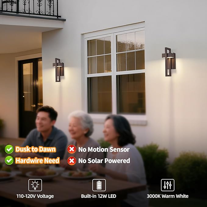 - Dusk to Dawn Sensor: tewei outdoor light fixture built-in high sensitivity IC light sensor, this modern porch light can sensitively detect the brightness of the surroundings ensuring this outdoor wall lights automatically turns on at night and turns off during the day, freeing up hands and saving electricity