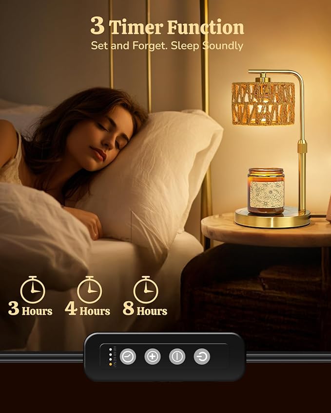 - 【Flame-Free, Timing Function】Say goodbye to open flame hazards and protect the safety of children and pets. Candle warmer lamp with a timing function (2/4/8 hours) and an auto-off function, ensuring it automatically turns off after the set time. Suitable for any corner of your home, allowing you to feel safe while enjoying the candle warmer.