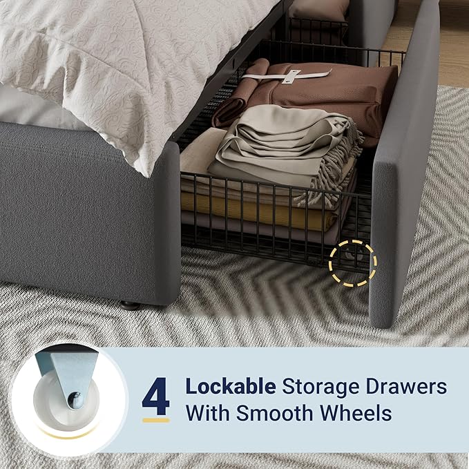 - Ample Under‑Bed Storage: Four large pull‑out drawers on smooth, silent rollers give this full storage bed hidden space for bedding, seasonal clothing, or shoes—maximizing organization without sacrificing floor area