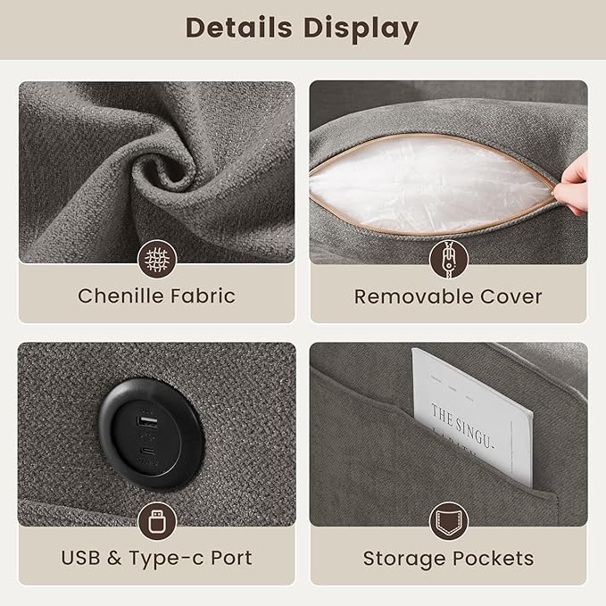 - Special Feature : Space Saving, Removable Back and 2 Seats Cushion Covers,Storage, USB&TYPE-C, Removable Cover