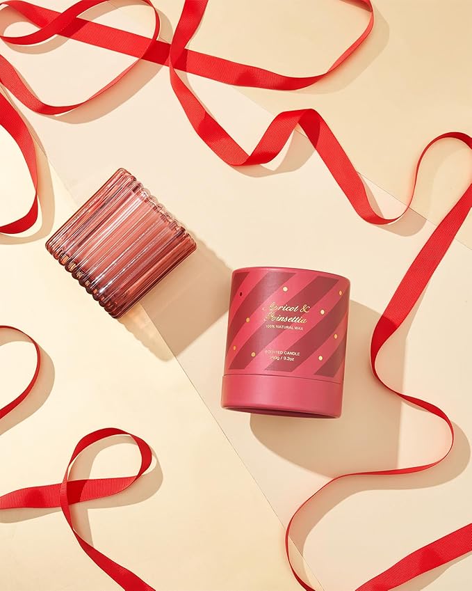 M&SENSE Apricot Poinsettia Scented Candles, Non Toxic Soy Candles, 9.2oz Natural Organic Clean Burning Up to 60 Hours, Christmas Home Decor Gifts for Women