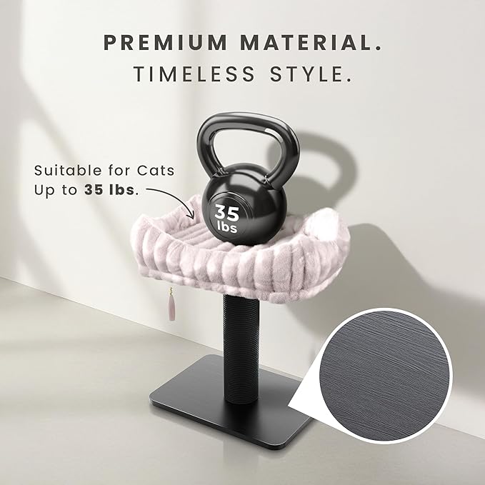 - MODERN, MINIMALISTIC AESTHETIC – Featuring clean lines and neutral tones, this scratching post integrates seamlessly into any home décor. Available in three elegant finishes—Black with Gray Bed, Black with Pink Bed, and Natural Wood with White Bed.
