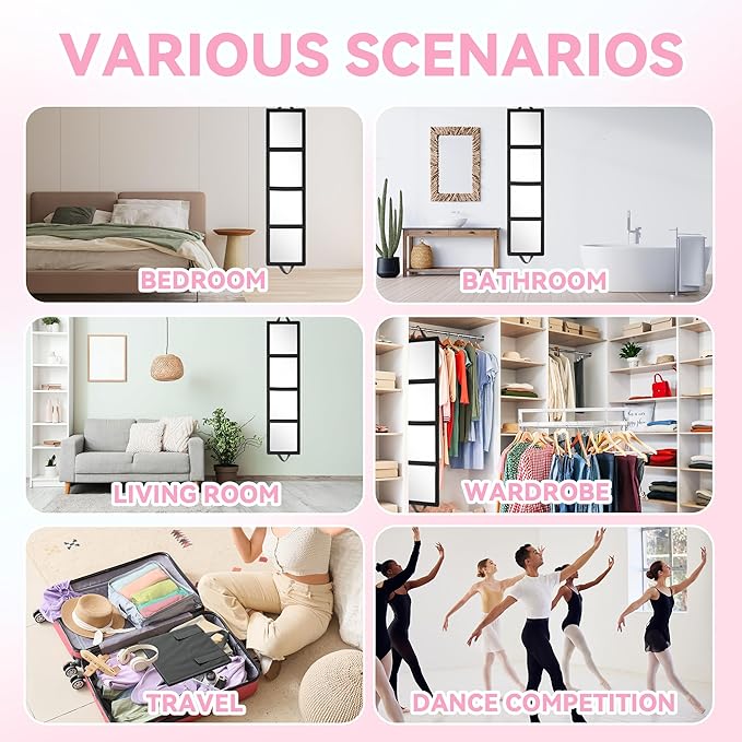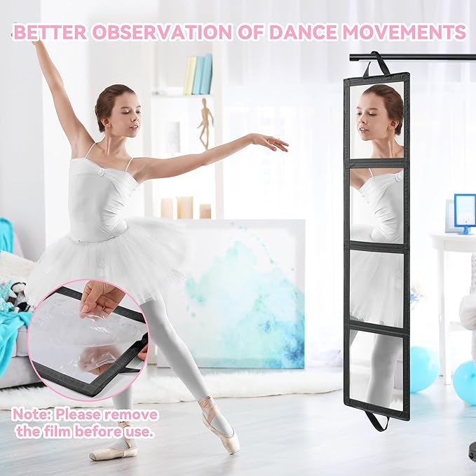 - Four-fold Extended Dance Mirror: ROYALAY mirror full length. The size is 47*13 inches. The extended size can better observe the entire body and is suitable for use when trying on clothes or dancing.