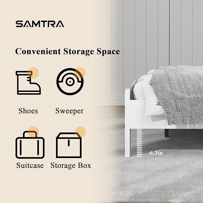 - Sturdy Structure: The wood bed frame adopts a reinforced high-quality steel frame and an extra-wide sturdy wood slat support system to ensure safety and durability, providing a strong and reliable support structure, with a capacity of up to 800 pounds
