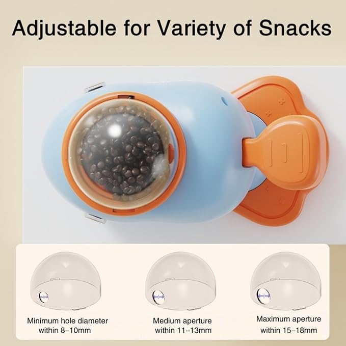 - Adjustable for variety of snacks: Featuring three transparent lids with different food outlet sizes (12mm, 16mm, 20mm), this toy accommodates the needs of all breeds of cats with different treat dispensing amount by each press promoting healthy digestion and preventing bloating