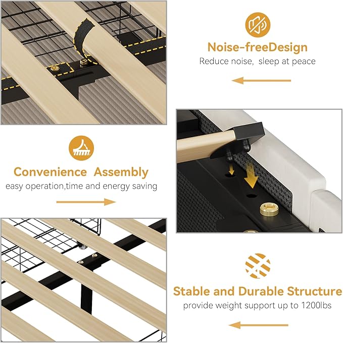 - Noiseless Setup & Easy Assembly: Enjoy a quieter, more restful sleep with the integrated noise-reducing design, preventing squeaks or movement sounds. The velvet fabric platform bed frame arrives with labeled parts, clear step-by-step instructions, and all tools included—so you can assemble it quickly and stress-free, without any guesswork or extra help