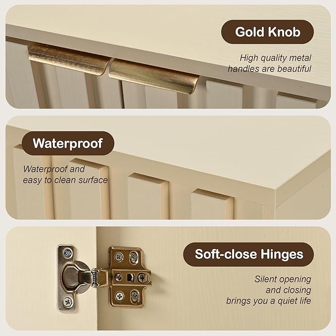 - 【Modern & Stylish Design】The Otterease fluted sideboard buffet cabinet features a sleek, modern design with fluted cabinet doors and brushed metal handles. Its beige wood finish enhances any living room, entryway, or dining area, becoming an elegant focal point. This beige sideboard is also a small buffet cabinet, blending practicality with modern style.