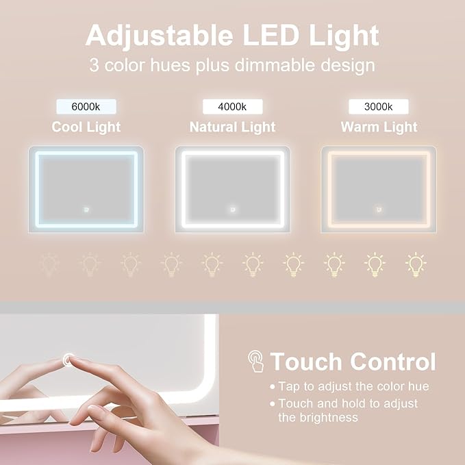 - 【Built-in mirror and lighting】Making it convenient for you to get ready in the morning or for a night out, the adjustable LED lighting features 3 customizable modes , letting you create the perfect ambiance for every step of your beauty routine.