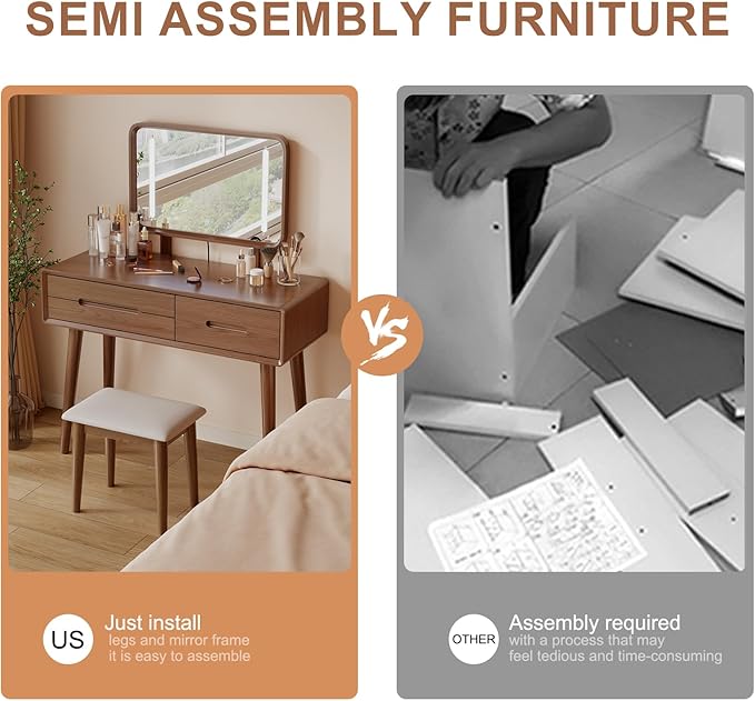 - 【3 in 1 design】Vanity,nightstand and desk are combined into an all-in-one of vanity.It can be placed in different settings. It is a more practical design