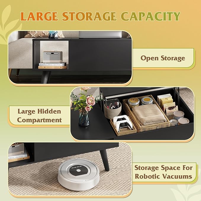 - Hidden & Spacious Storage:The clever design includes a hidden storage compartment under the tabletop, perfect for organizing magazines, laptops, and remote controls. The lift mechanism is optimized to maximize storage space, keeping your essentials dust-free and your living area tidy.