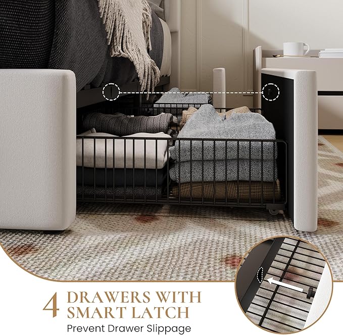 - Large Storage Drawers: This full size bed frame features 4 spacious storage drawers with smooth wheels, offering ample space for your accessories
