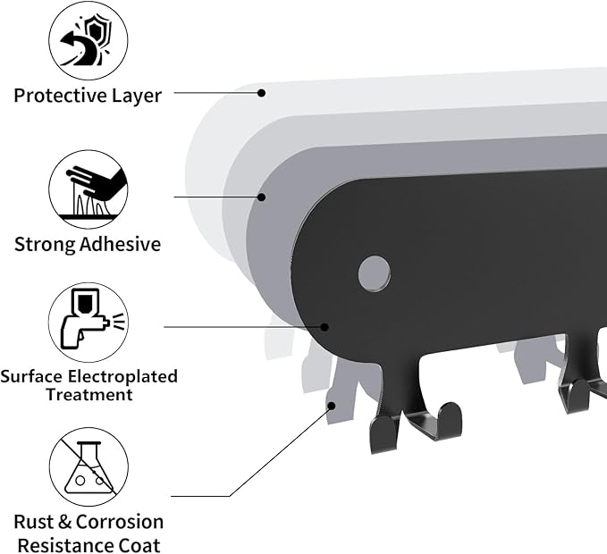 - 🗝️【Excellent Quality Control】The self adhesive key holder for wall is made of high-quality stainless steel, which is sturdy and thickened, not easy to deform, effectively prevents rust, corrosion and oxidation, and is scratch-resistant.