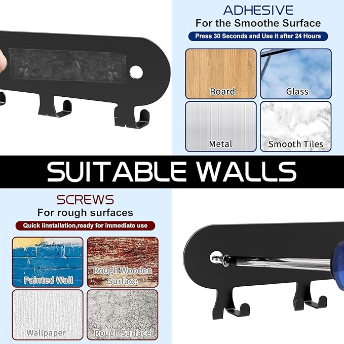 - 🗝️【Wide Application】The key rack wall mount can be installed on the walls of the entrance hall, garage, corridor and living room, kitchen. The Key Hanger Wall Mount can not only be used to hang keys, but also other small items, such as hats, umbrellas and other small items. Keep your daily necessities in order. This key hook can make better use of wall space to store small and light items, saving more space for your home.