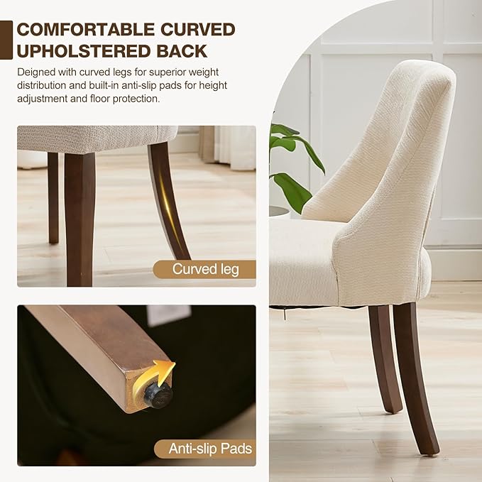 - Modern Upholstered Dining Chairs: With a sleek 19.7 inch height and elegant wood legs, these kitchen chairs add sophistication to both homes and commercial settings. Ergonomic upholstered dining chairs with padded seat offers exceptional support, ensuring comfort during meals or gatherings. A perfect blend of style and comfort for any dining space