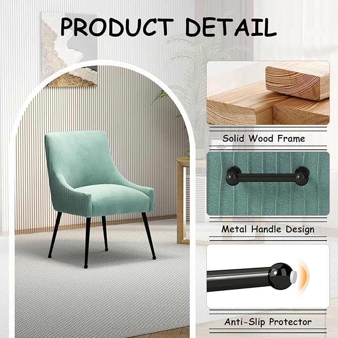 - Versatility Velvet Accent Chair: Available in a variety of colors, kitchen chairs can easily be matched to any dining table or home decor style. Dining room chairs can be placed in a variety of settings, including the kitchen, dining room, living room, balcony,courtyard, waiting room, playrooms, patio, restaurants, canteen, and cafes. Their versatility makes them a great addition to any space, adding both style and comfort wherever they are placed