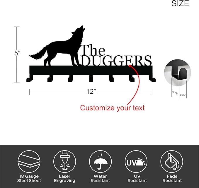 Personalized Key Holder with Name, Custom Metal Wolf Silhouette Key Rack Hanger, Wall Organizer with 7 Hooks for Entryway, Front Door, Hallway, Kitchen, Farmhouse Decor