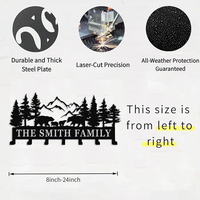 Custom Metal Hooks Key Rack with Name,Bear Family Theme Decor,Personalized Key Holder Wall Mount Hooks for Bedroom Entryway,Housewarming Gift Bear