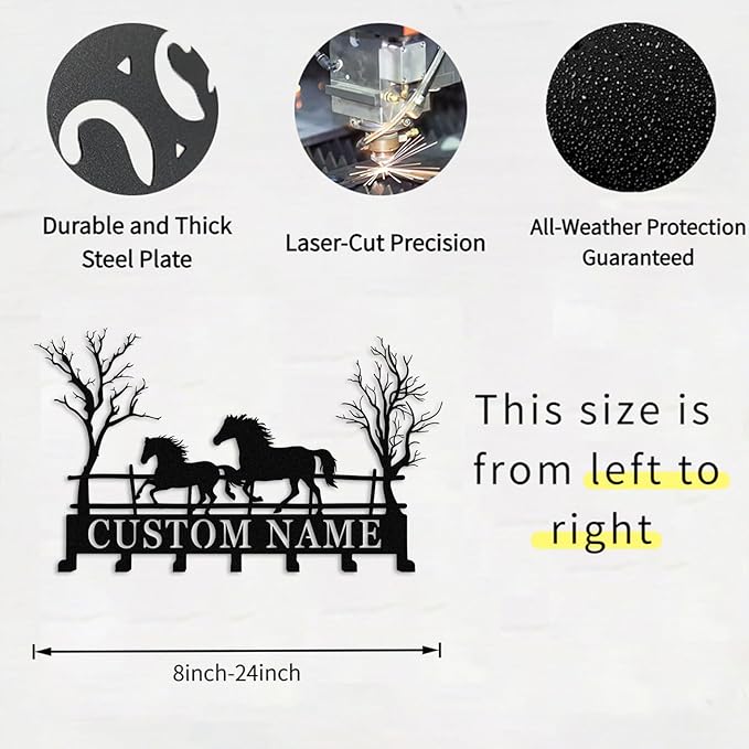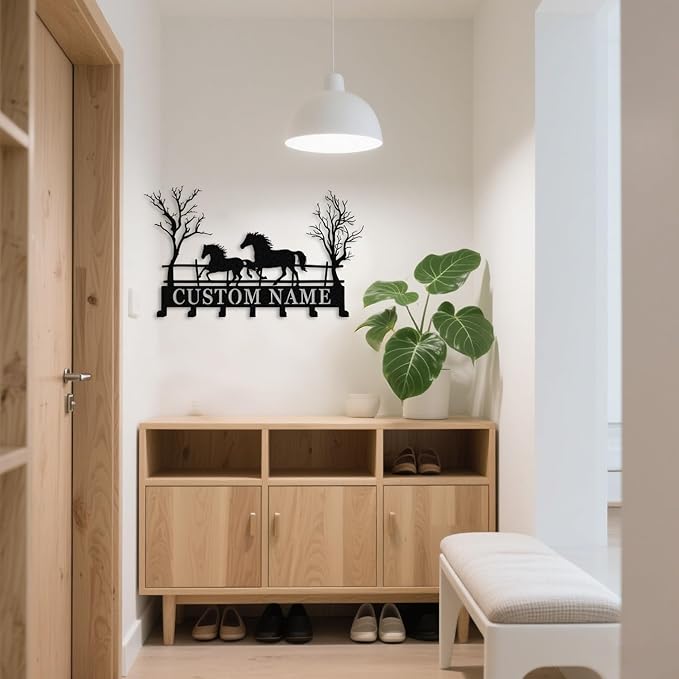 Personalized Horse Metal Key Rack Hooks with Name,Custom Key Holder for Wall,Metal Key Holde Wall Mount Hooks for Bedroom Entryway Kitchen Office Horse