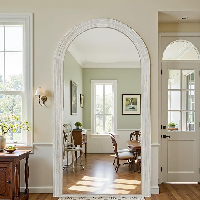 Antok Full Length Mirror 76"×41" Floor Mirror Standing Tall Mirror, Arched Stand up Large Wall Mirrors, Freestanding Full Body Mirrors for Bedroom Living Room Wood Vintage Style White