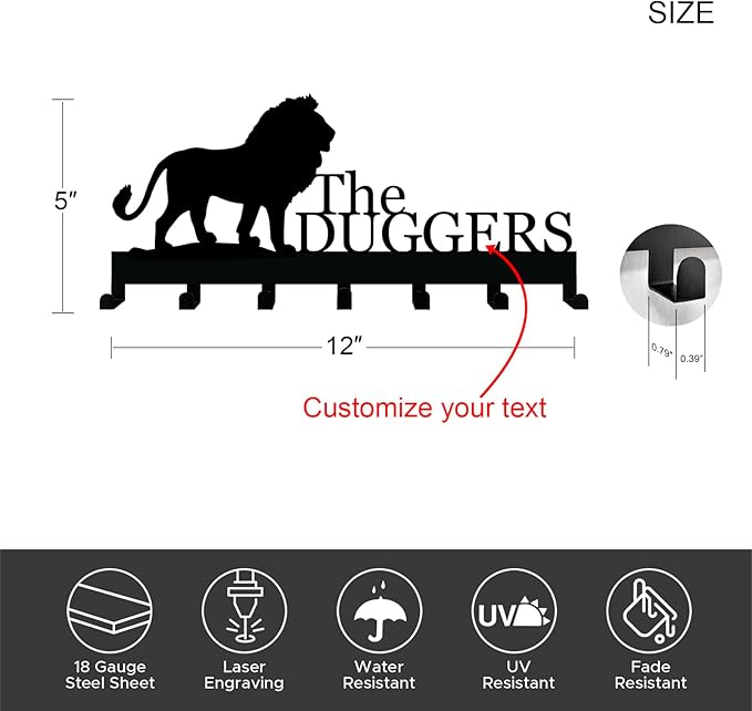 Personalized Key Holder with Name, Custom Metal Lion Silhouette Key Rack Hanger, Wall Organizer with 7 Hooks for Entryway, Front Door, Hallway, Kitchen, Farmhouse Decor