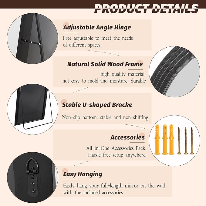 - Premium Wooden Frame - Our full length mirror is crafted from solid natural material with a smooth, vintage-style finish. The sturdy yet lightweight frame resists warping. The U-bracket is pre-installed and requires no assembly and is ready to use right out of the box