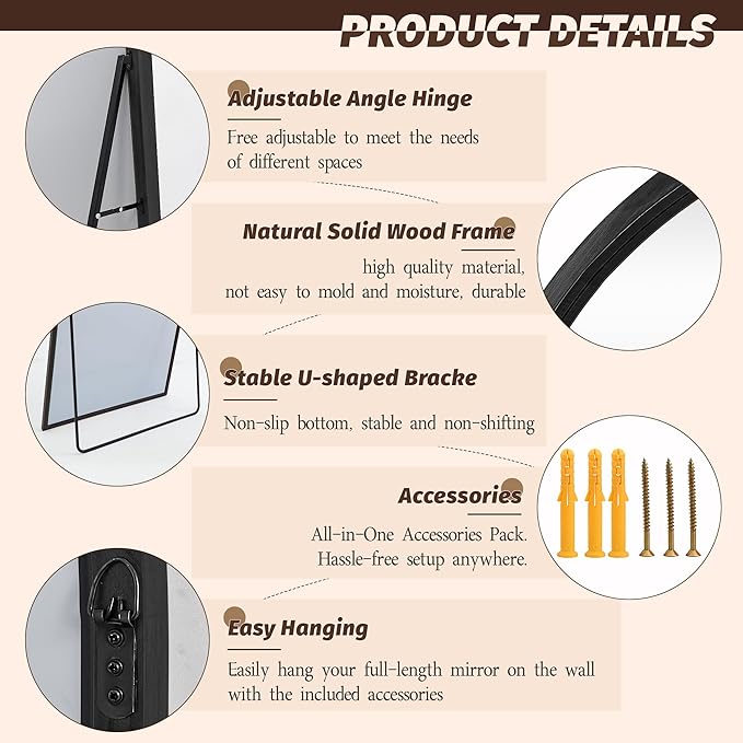 - Premium Wooden Frame - Our full length mirror is crafted from solid natural material with a smooth, vintage-style finish. The sturdy yet lightweight frame resists warping. The U-bracket is pre-installed and requires no assembly and is ready to use right out of the box