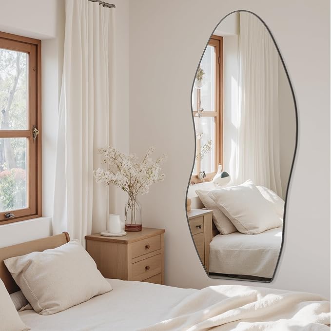 - Irregular Design: The Wave Full Body Mirror is perfect for giving you a comprehensive understanding of yourself. Three color options are available: Black, gold, silver, catering to different home styles and personal preferences, making it a standout in your home decor. The aluminum frame gives you a beautiful enjoyment.