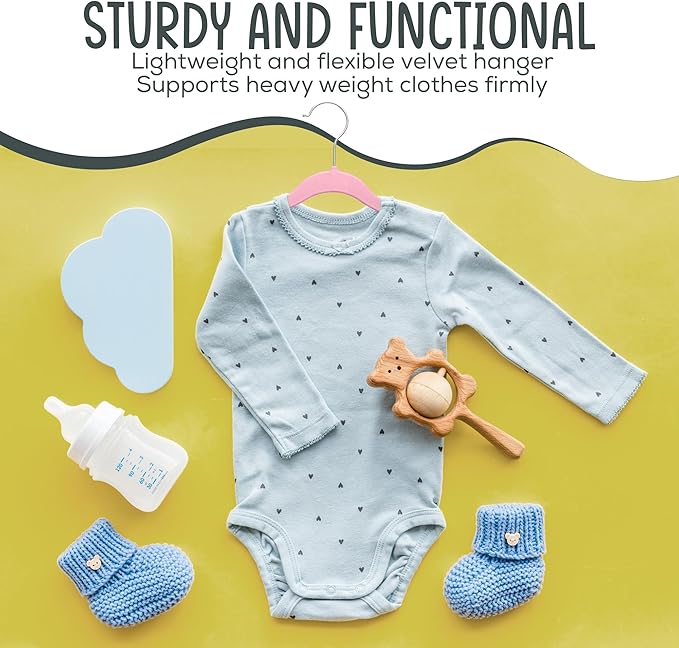 - VERSATILE VELVET HANGERS : Organize with ease using 25 velvet baby hangers. Ideal for baby clothing, jackets, pants, shirts, dresses, underwear, camisoles, nightgowns, or pet clothing, making it a versatile closet essential.