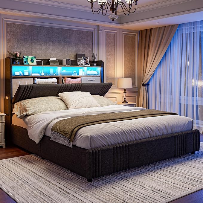 - Special Feature : 4 Large Under-Bed Drawers, Built-In LED Lights & Type-C Charging, Hidden Storage Headboard, Premium Upholstered Design, Sturdy Construction 4 Large Under-Bed Drawers, Built-In LED Lights & Type-C Charging, Hidden Storage Headboard, Premium Upholstered Design, Sturdy Construct… See more