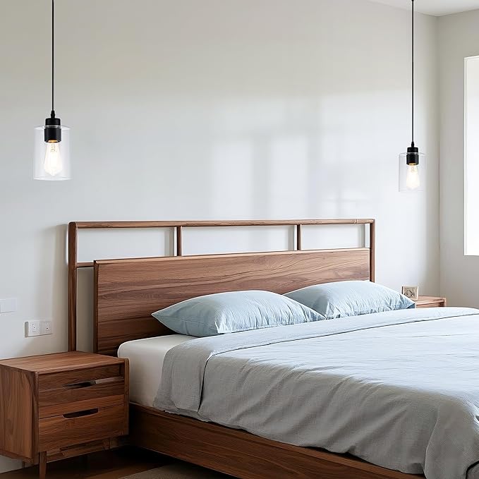 - Modern Industrial & Farmhouse Style: Featuring a matte black finish canopy and high-transparency clear glass shades, this 2-pack pendant light blends modern minimalism with vintage farmhouse charm. The clear glass provides bright, non-dazzling illumination, making it perfect for creating a cozy atmosphere in your home.
