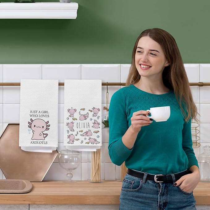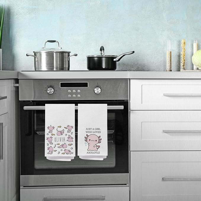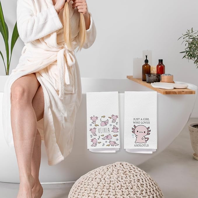 Axolotl Lover Gifts Bathroom Hand Towels, Kids Bathroom Decor, Cute Pink Axolotls Kitchen Towels, Animal Lover Gifts Dish Tea Towel, 16x24 Inch Set of 2