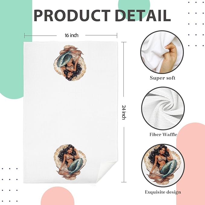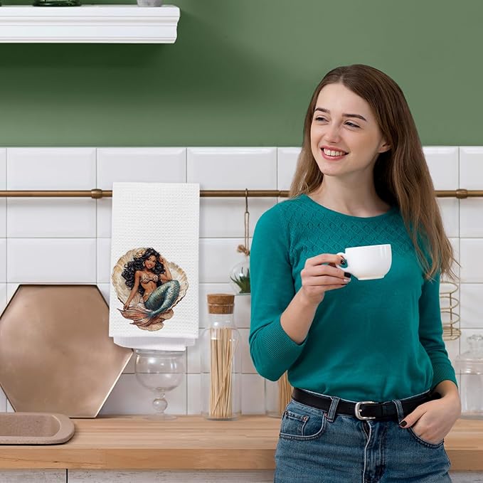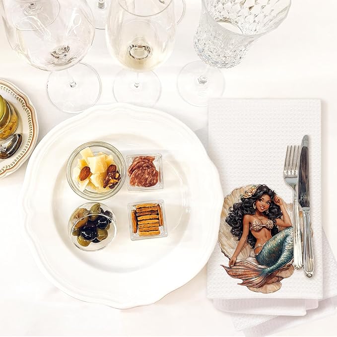 Black Mermaid Bathroom Hand Towels, Mermaid Girls Kids Bathroom Decor and Accessories, Coastal Beach Kitchen Towels, Nautical Dish Tea Towel for Kitchen, 16x24 Inch