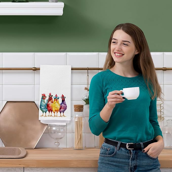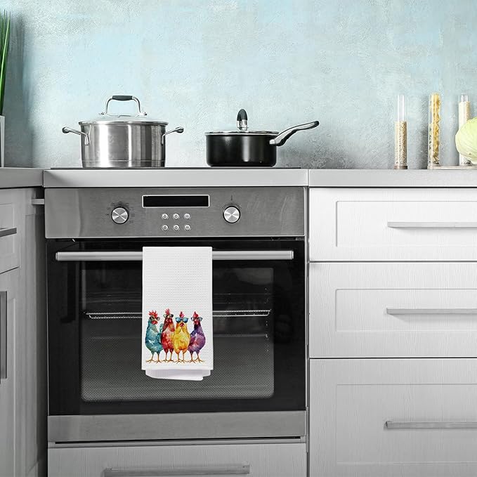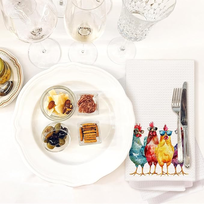 Funny Chicken Kitchen Towels, Chicken Lovers Lady Mom Gifts Dish Tea Towels, Cool Colorful Chicks in Sunglasses Decorative Hand Towel for Bathroom Kitchen, 16x24 Inch
