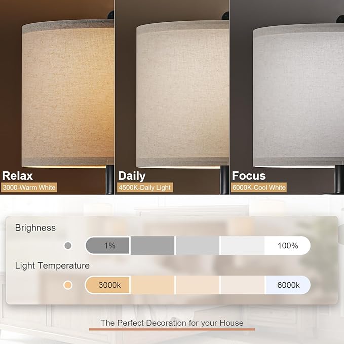 - 【Stepless Dimmable Lamp】 Experience lighting control with floor lamp featuring 3000K-6000K adjustable color temperature (Warm/Neutral/White) and 5%-100% stepless brightness adjustment. (9W Bulb Included)