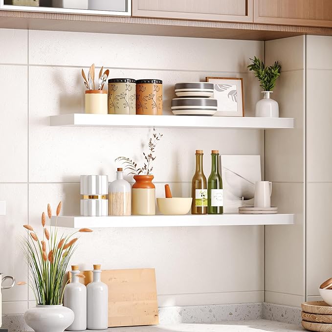 - Exquisite Wall Surface Decoration: Two classic and elegant white wooden shelves can be placed on each wall surface of all household rooms. This floating shelf for room wall is not only for its decoration effect, but also for this wall shelves high practicality. It is an ideal place to display your beloved photos, trophies and other delicate ecorations