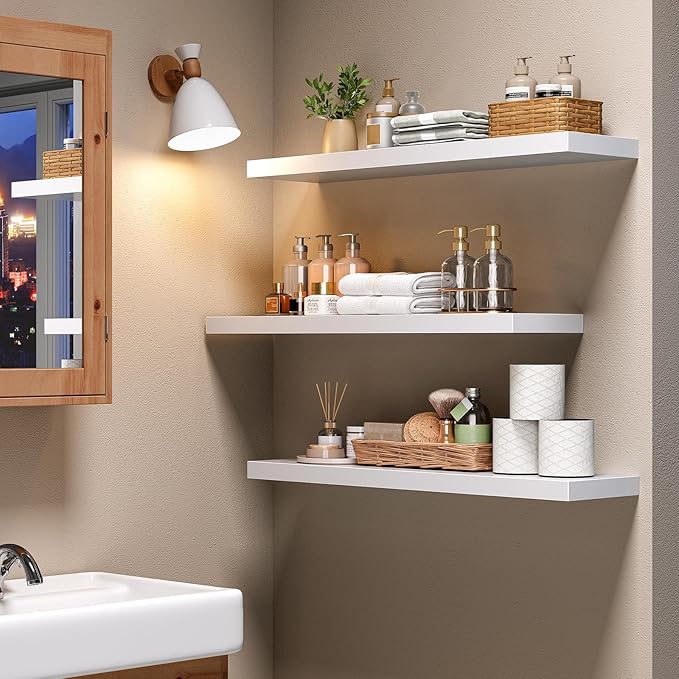 - Fully-Equipped: You can use the floating shelves for wall in the bedroom, living room, office, bathroom, kitchen, as display shelves, storage shelves, etc.. There are two kinds of expansion tubes for these wall shelves in order to ensure that the ledge can be hung on the wall firmly, whether it is the concrete or the hollow brick wall. Secure screws to studs when mounting on hollow walls, and avoid installation if not possible