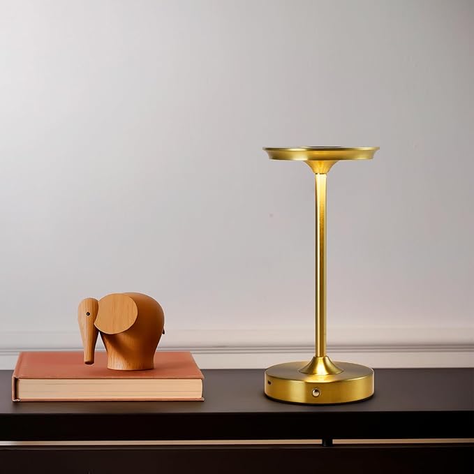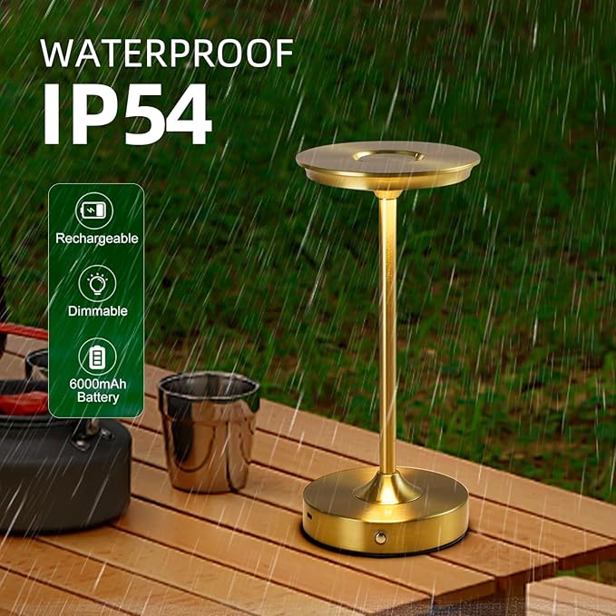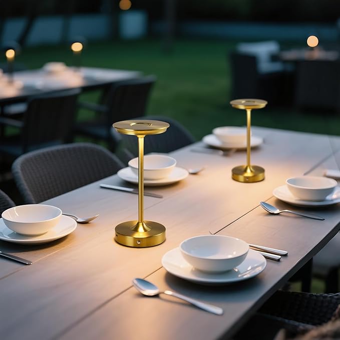 2 Pack Rechargeable Table Lamp, LED Cordless Table Lamp, 5000mAh Battery Operated Portable Table Light,Dimming for Restaurant/Patio/Outdoor(Gold)