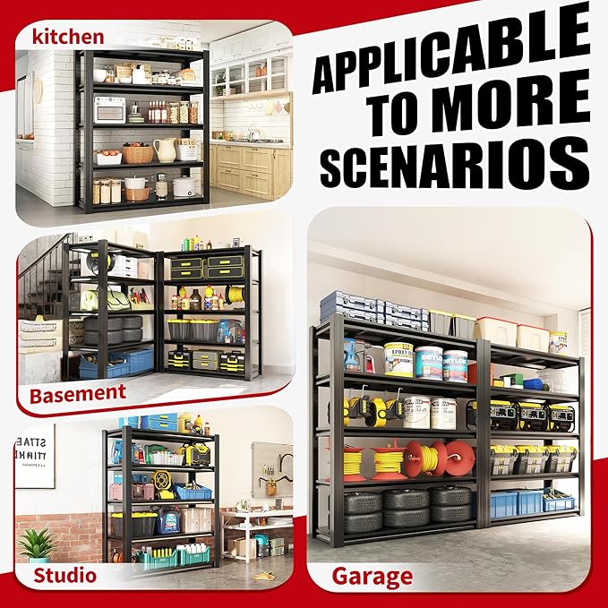 - 【Durable & Easy-Clean Finish】Our storage shelves features a robust powder-coated that provides superior resistance to rust, scratches, chips, and corrosion. Wipes clean effortlessly, maintaining its sleek look in garages, basements, workshops, or offices for years to come.