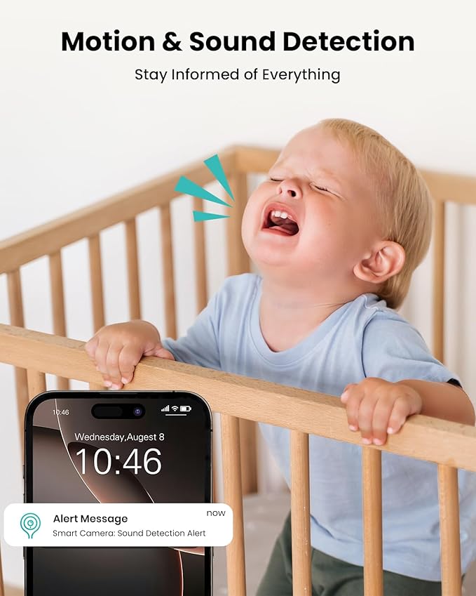- [Smart Tracking & Crisp Night Vision] Get instant alerts from the wireless indoor security cameras with smart motion-tracking. Advanced IR night vision provides a clear view up to 33ft. Keep an eye on your little one even in darkness with this baby camera monitor. No glowing lights to disrupt sleep.
